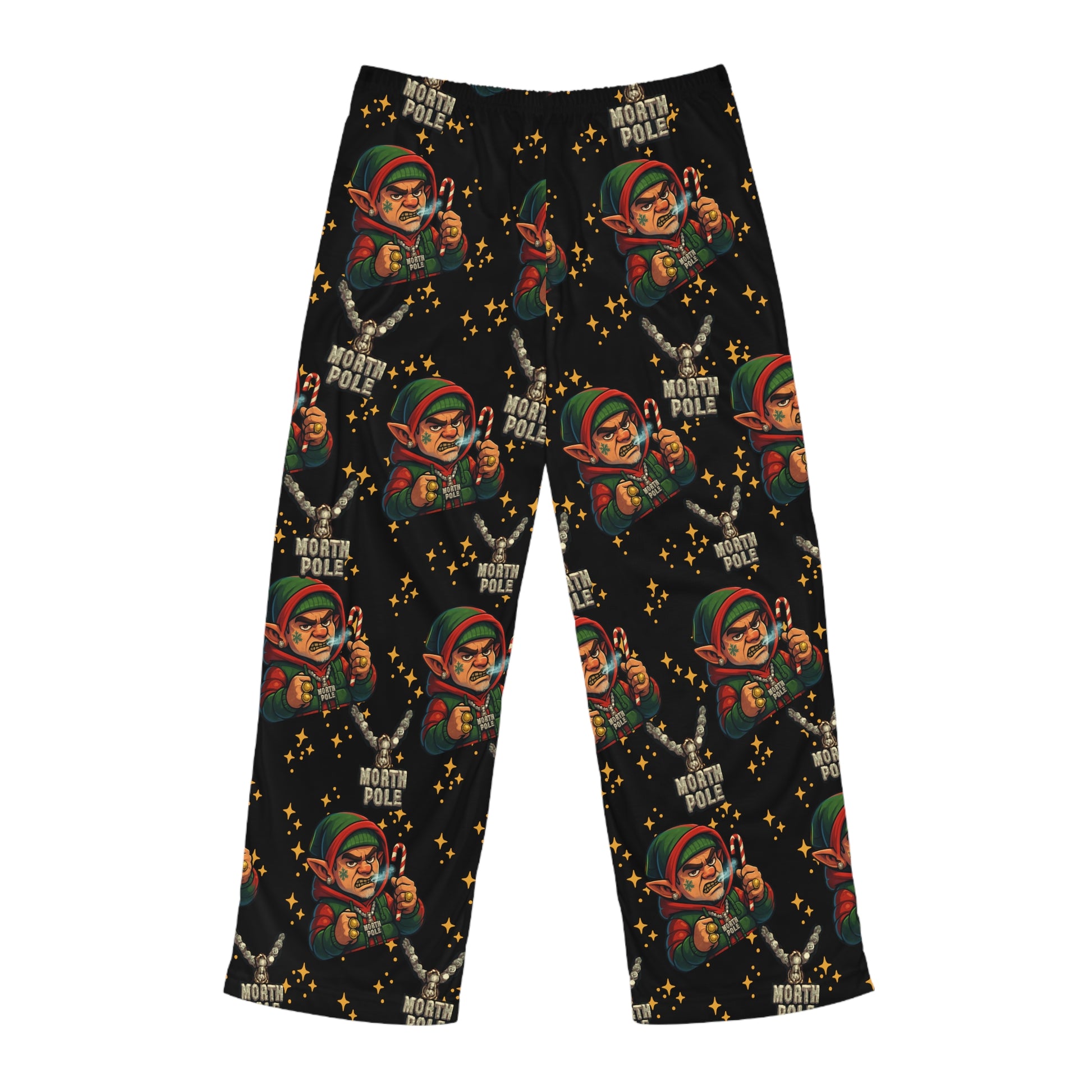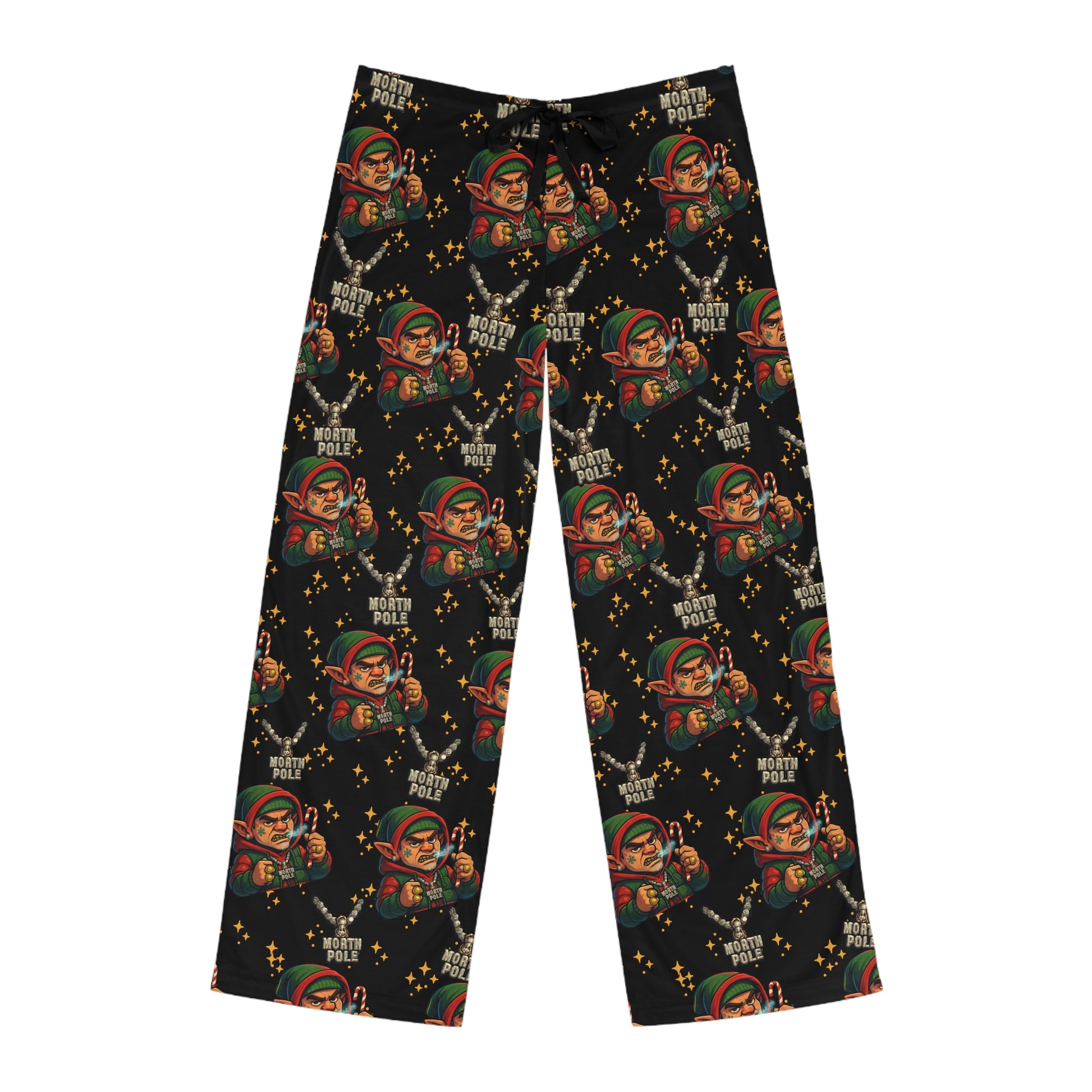 Slide into slow evenings with these soft, printed pajama pants. The lightweight polyester drapes easily and moves with you — from folding into a book with a cup of tea to stretching out on the couch for a movie night. The all-over whimsical pattern sits on a deep black field, so the tiny, colorful motifs pop without shouting. A back elastic and black drawstring let you tune the fit, while clean double-stitched seams hold up wash after wash. These pants carry a cozy, slightly playful mood that makes home feel intentional and warm.