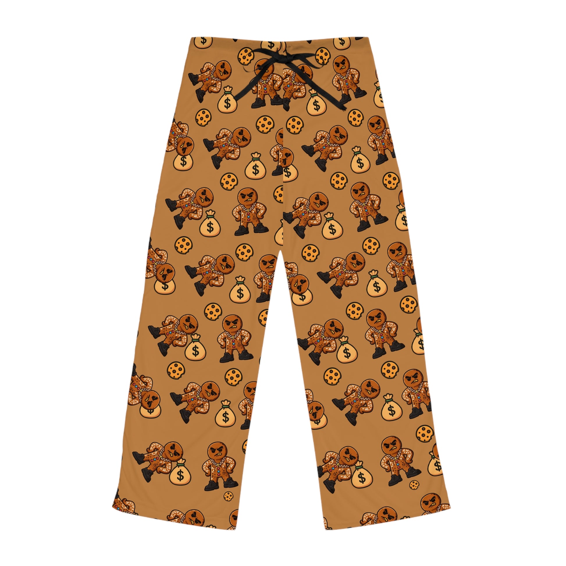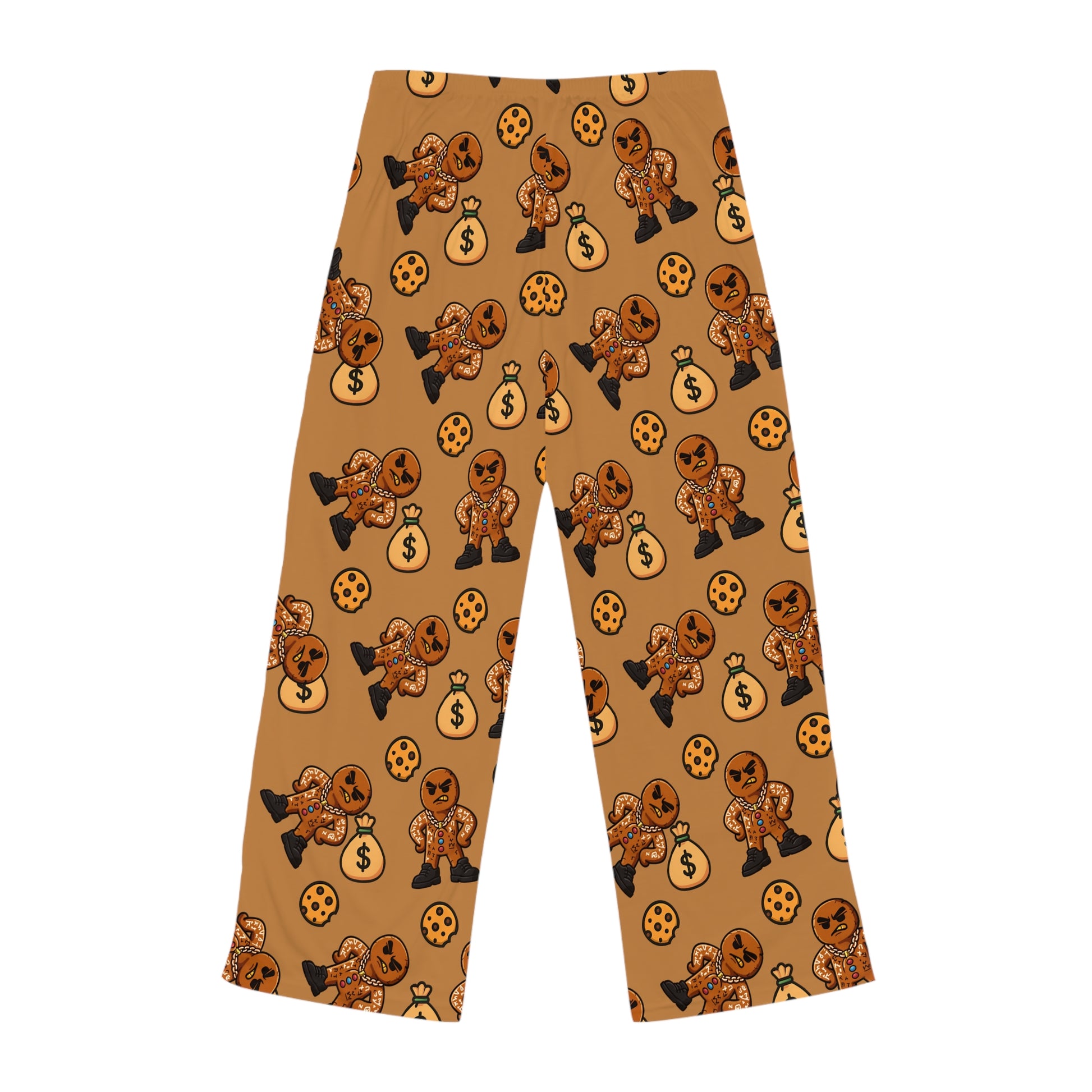 These lightweight pajama pants bring playful comfort to slow mornings and late-night cookie raids. The soft, airy polyester drapes easily for relaxed movement while an all-over print of cinnamon-brown gingerbread figures, cookies, and coin sacks adds mischievous, cozy charm. A black drawstring and elastic back let you tune the fit; double-stitched seams keep them holding up through washes and loungy days. Wear them with an oversized tee for movie nights, pair with a robe for holiday mornings, or slip them on for a weekend of baking and warm kitchen light.